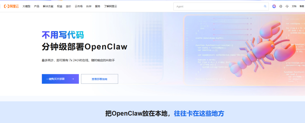 阿里云官方专门开了个OpenClaw部署专题页,所有入口都给你集齐了,不用到处翻。